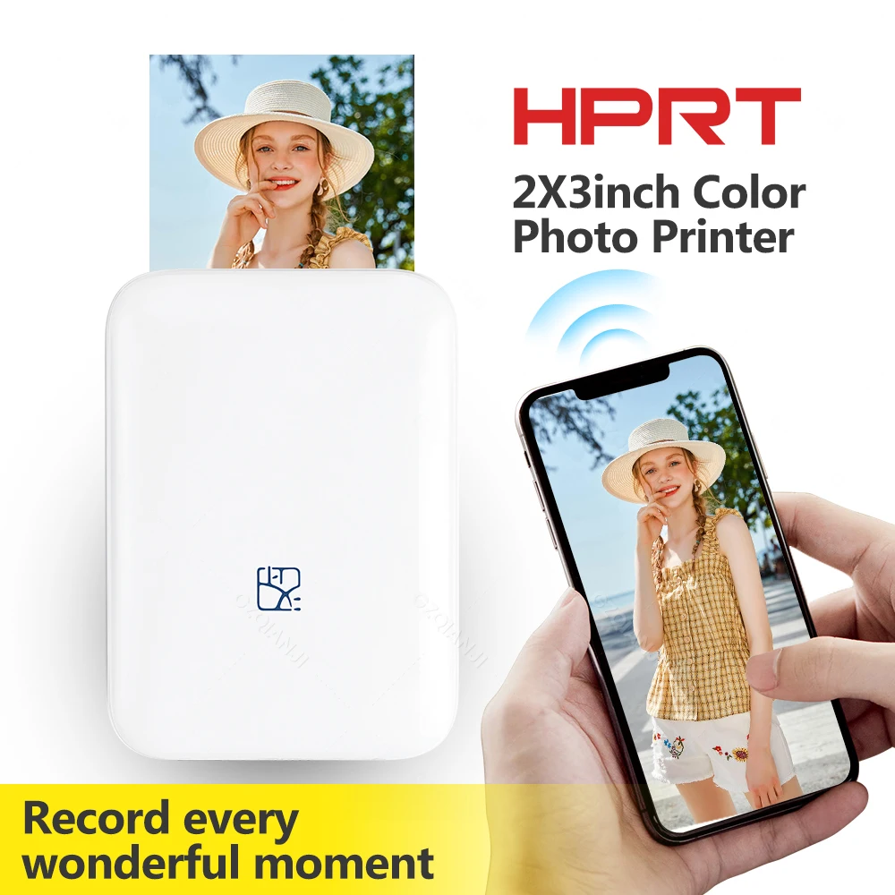 HPRT Portable Photo Printer Pocket Size Wireless Compatible with iOS&Android Phone, Zink Technology,Print 2x3 Sticky-Backed Photos, (with 5 Sheets Photo Papers)